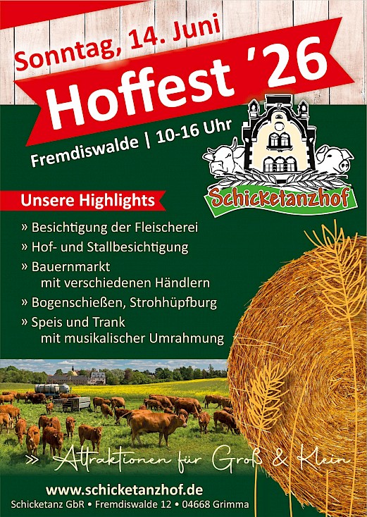 Als Familienunternehmen Schicketanz betreiben wir nunmehr in dritter Generation eine nachhaltige und fortschrittliche Landwirtschaft. Rund um unseren Unternehmenssitz im Herzen des Muldentals befindet sich unser Landwirtschafts- und Fleischereibetrieb.